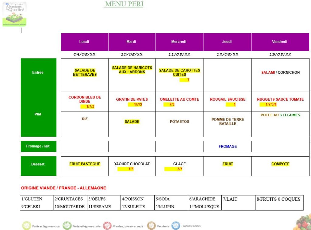 Menus périscolaire