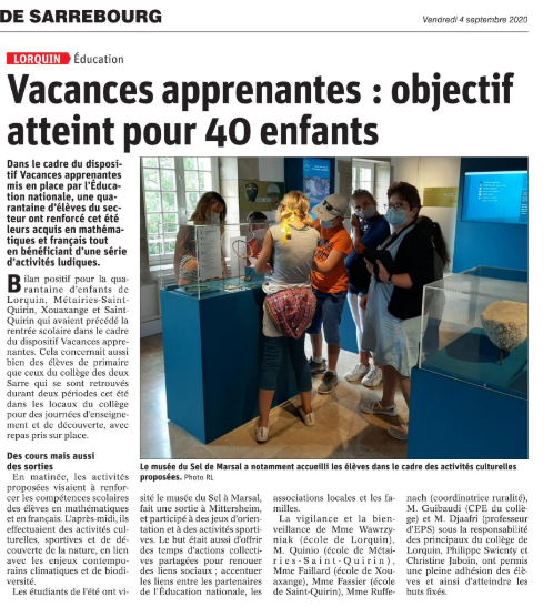 Vacances apprenantes : objectif atteint pour 40 enfants