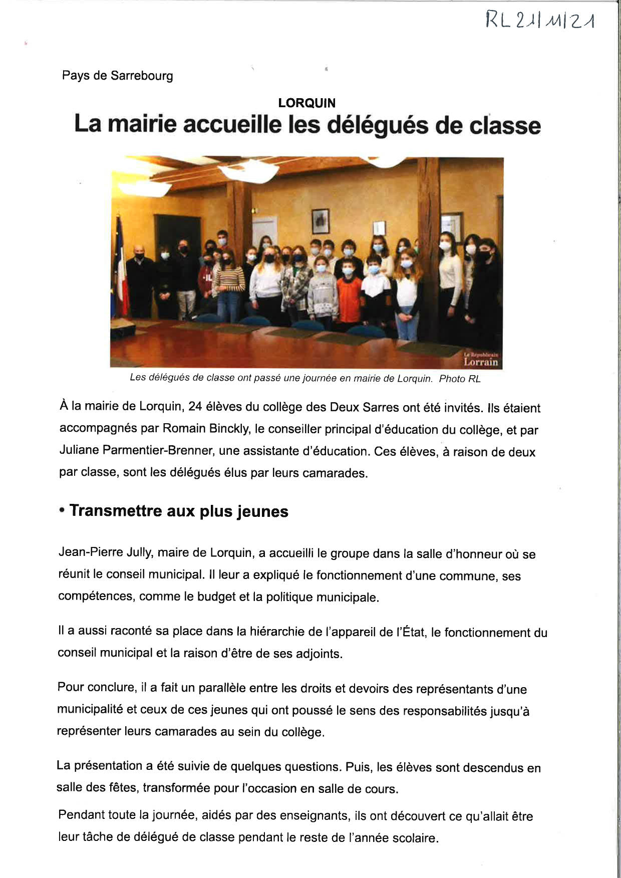 La mairie accueille les délégués de classe